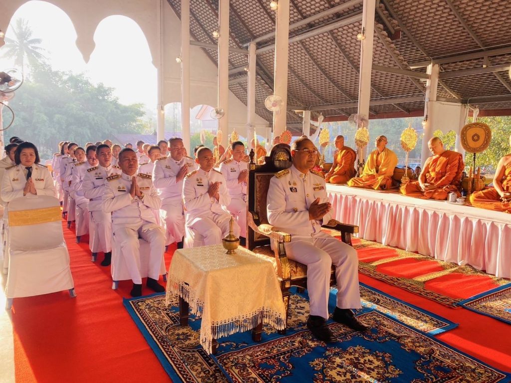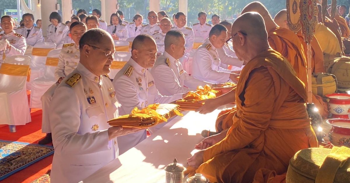 พ.ต.ท.ศรชัย แวงวรรณ สวป.สภ.หนองบ่อ พร้อมข้าราชการตำรวจ สภ.หนองบ่อ ร่วมพิธีสวดพระพุทธมนต์และทำบุญตักบาตร เพื่อเฉลิมพระเกียรติพระบาทสมเด็จพระเจ้าอยู่หัว เนื่องในโอกาสพระราชพิธีสมมงคล ทรงเจริญพระชนมายุได้ ๒๖,๔๖๙ วัน พระชนมายุเท่าพระบาทสมเด็จพระพุทธยอดฟ้าจุฬาโลกมหาราช สมเด็จพระปฐมบรมกษัตริยาธิราช แห่งพระราชวงศ์จักรี พุทธศักราช ๒๕๖๘ ณ ศาลาการเปรียญ วัดถนนตาล บ้านดอนข้าวหลาม หมู่ ๑๐ ต.ก้านเหลือง อ.นาแก จ.นครพนม