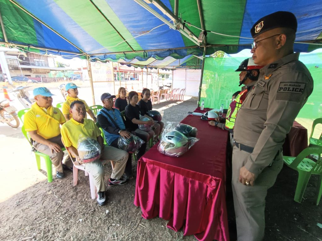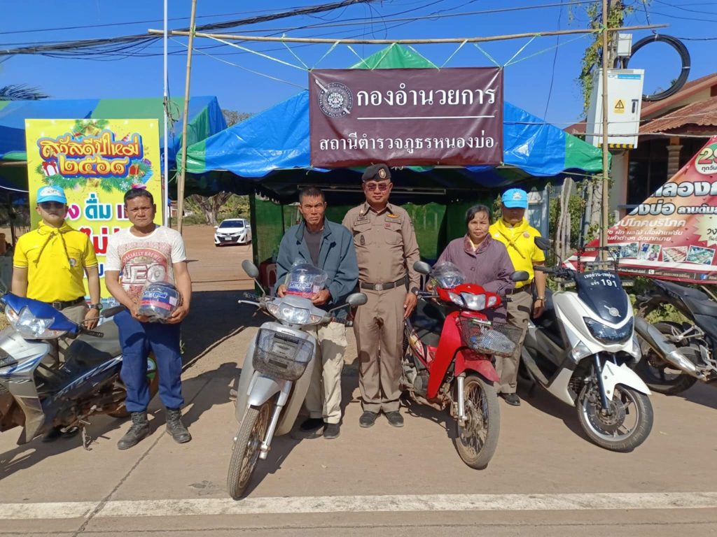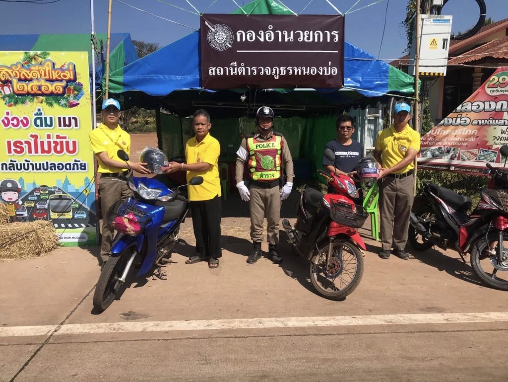 พ.ต.ท.สง่า อินทร์สาธร สวญ.สภ.หนองบ่อ พร้อมด้วยข้าราชการตำรวจจิตอาสา สภ.หนองบ่อ ประชาสัมพันธ์โครงการจิตอาสาจราจรรณรงค์การขับขี่ปลอดภัย สวมหมวกนิรภัยเพื่อลดอุบัติเหตุจราจรทางบก ในช่วงเทศกาลปีใหม่ 2568 และเป็นตัวแทนสำนักงานตำรวจแห่งชาติมอบหมวกนิรภัยให้กับประชาชนจิตอาสาจราจรเชิญชวนรณรงค์เป็นแบบอย่างในการสวมหมวกนิรภัยขณะขับขี่รถจักรยานยนต์ ณ จุดบริการประชาชน หน้าตลาดชุมชนตำบลหนองบ่อ อำเภอนาแก จังหวัดนครพนม
